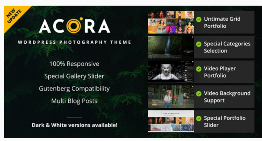 Acora WordPress Photography Theme is a gorgeous and creative theme for professional studios and photography and videography